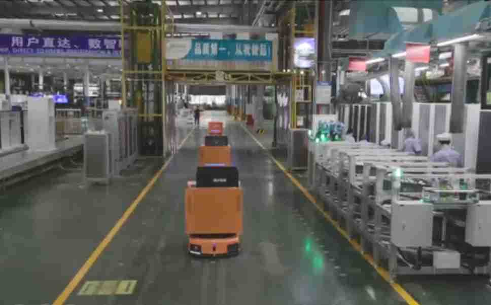 为车载冰箱物流配送打造的智能解决方案,,,包含产中物流通过潜伏举升AMR搬运至线边,,,产后成品物流智能仓储,,,流程包含产中物流智能齐套入库,,,,线边安灯叫料AMR智能配送至线边,,,成品入库、、、、出库,,,通过无人堆高车机器人,,,,智能仓储管理替代人工作业管理,,,实现更高存储、、、、更高效率、、更具柔性化的解决方案。。。。